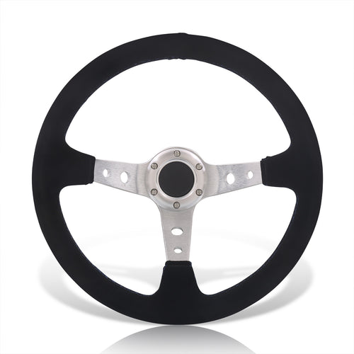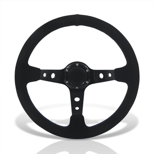 Universal 350mm Suede Deep Dish Style Aluminum Steering Wheel Black with Blue Stitching