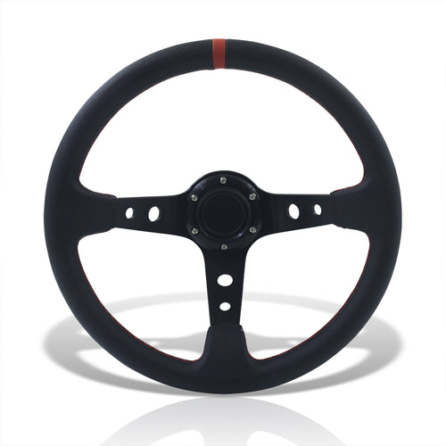 Universal 350mm PVC Leather Deep Dish Style Aluminum Steering Wheel Black Center with Red Stitching