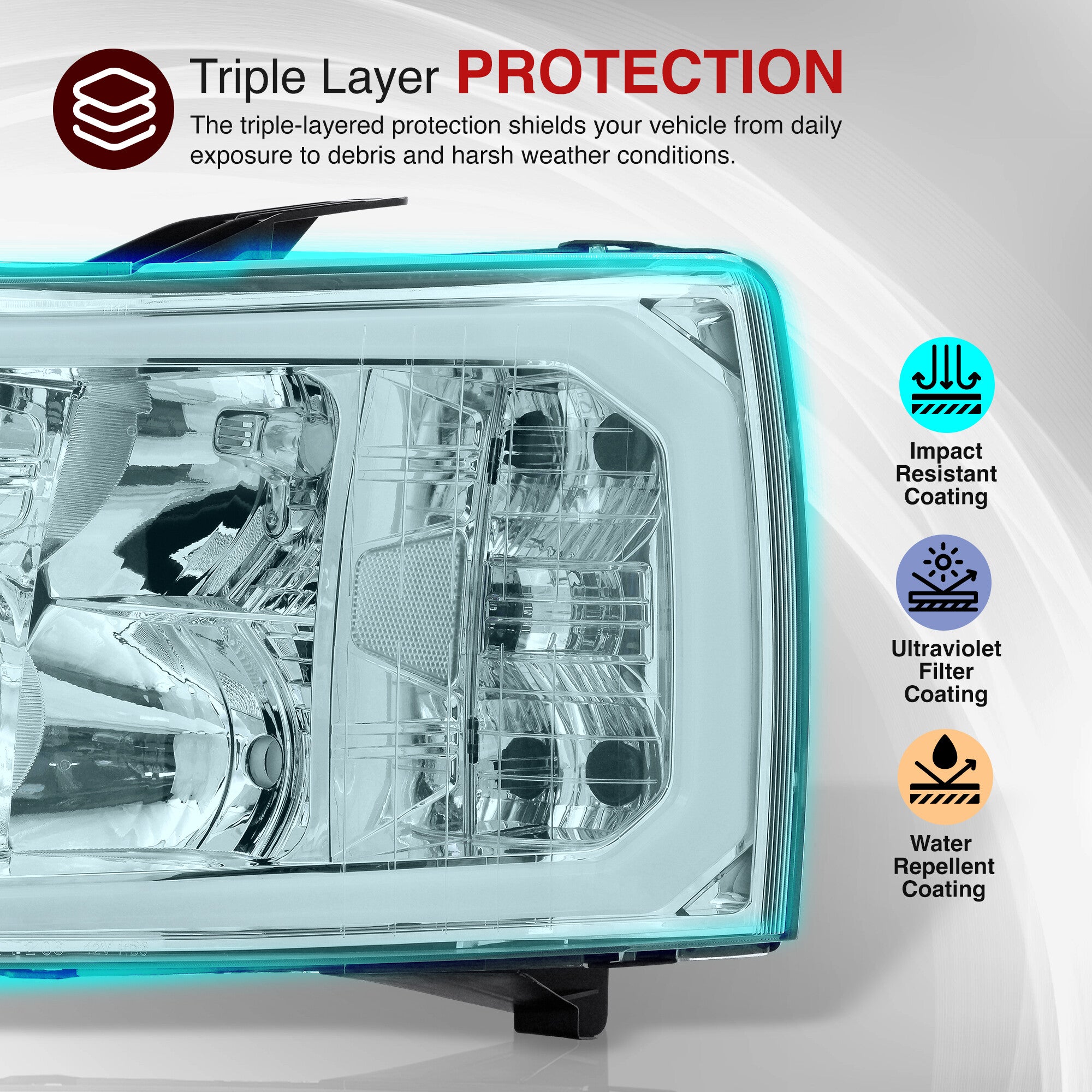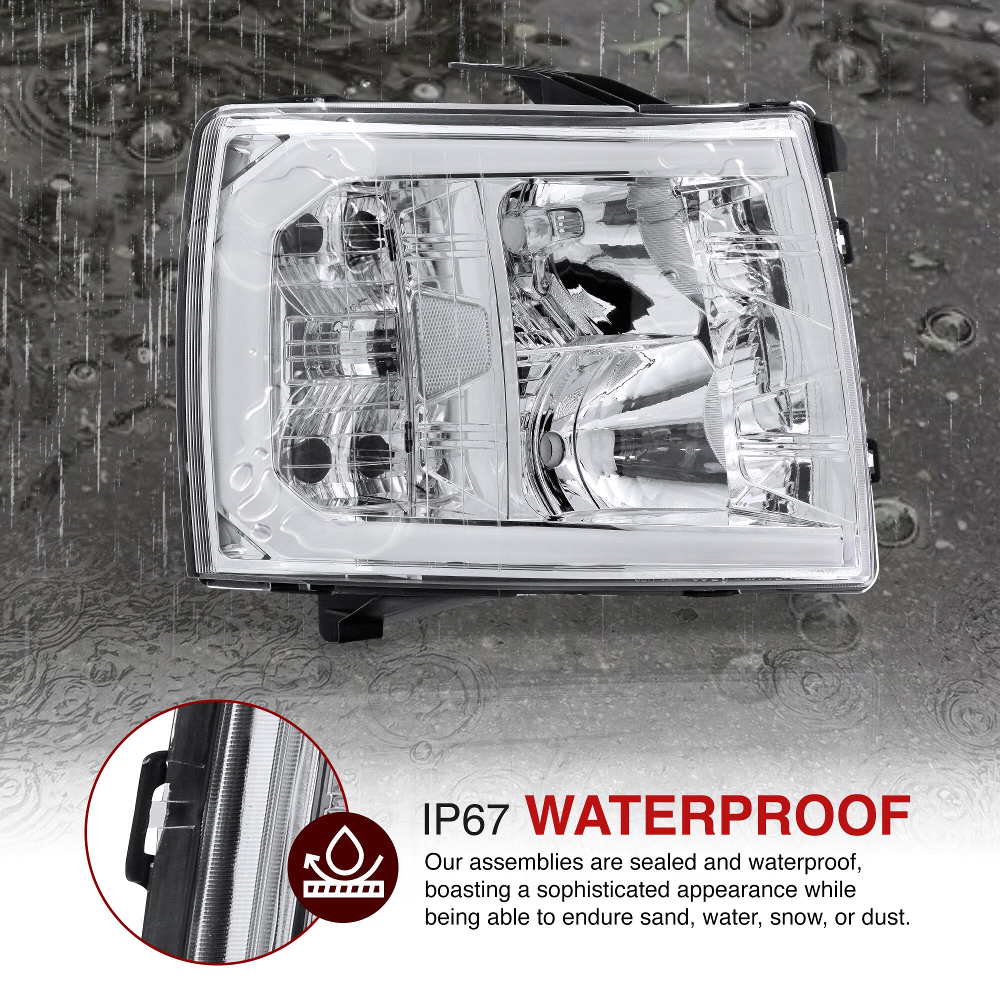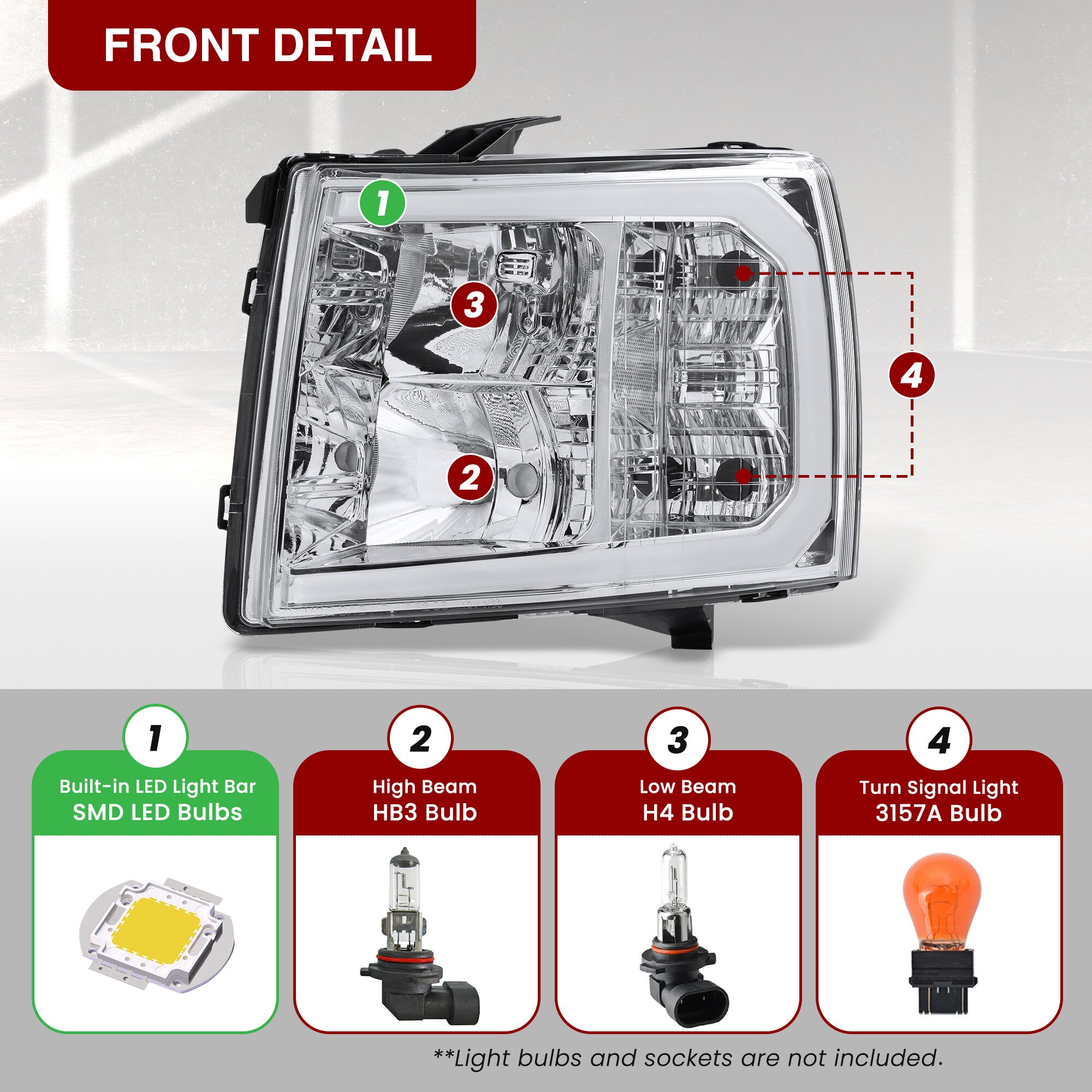 Chevrolet Silverado 2007-2013 LED DRL Bar Factory Style Headlights Chrome Housing Clear Len Clear Reflector