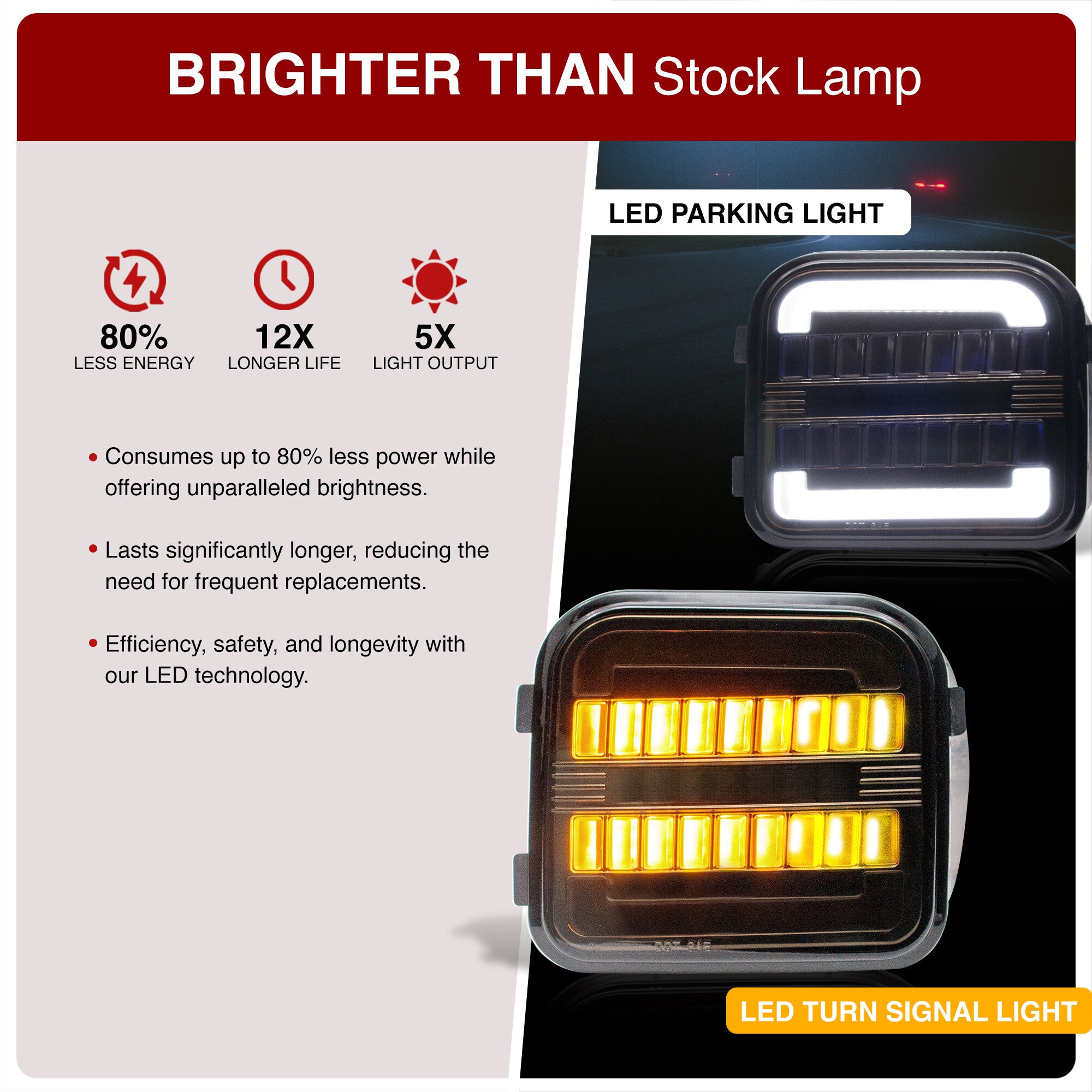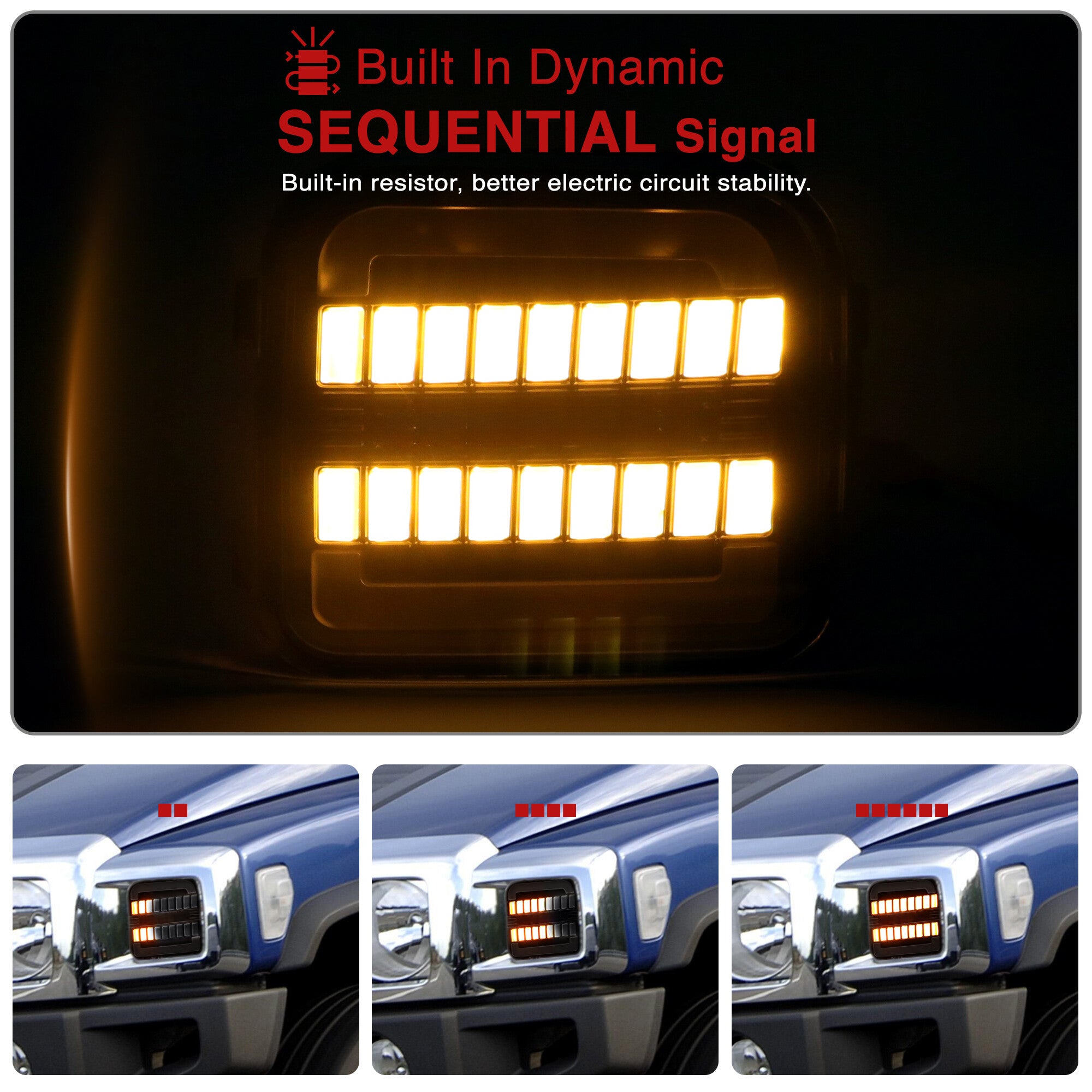 - Direct replacement factory style corner lights with sequential LED turn signals.