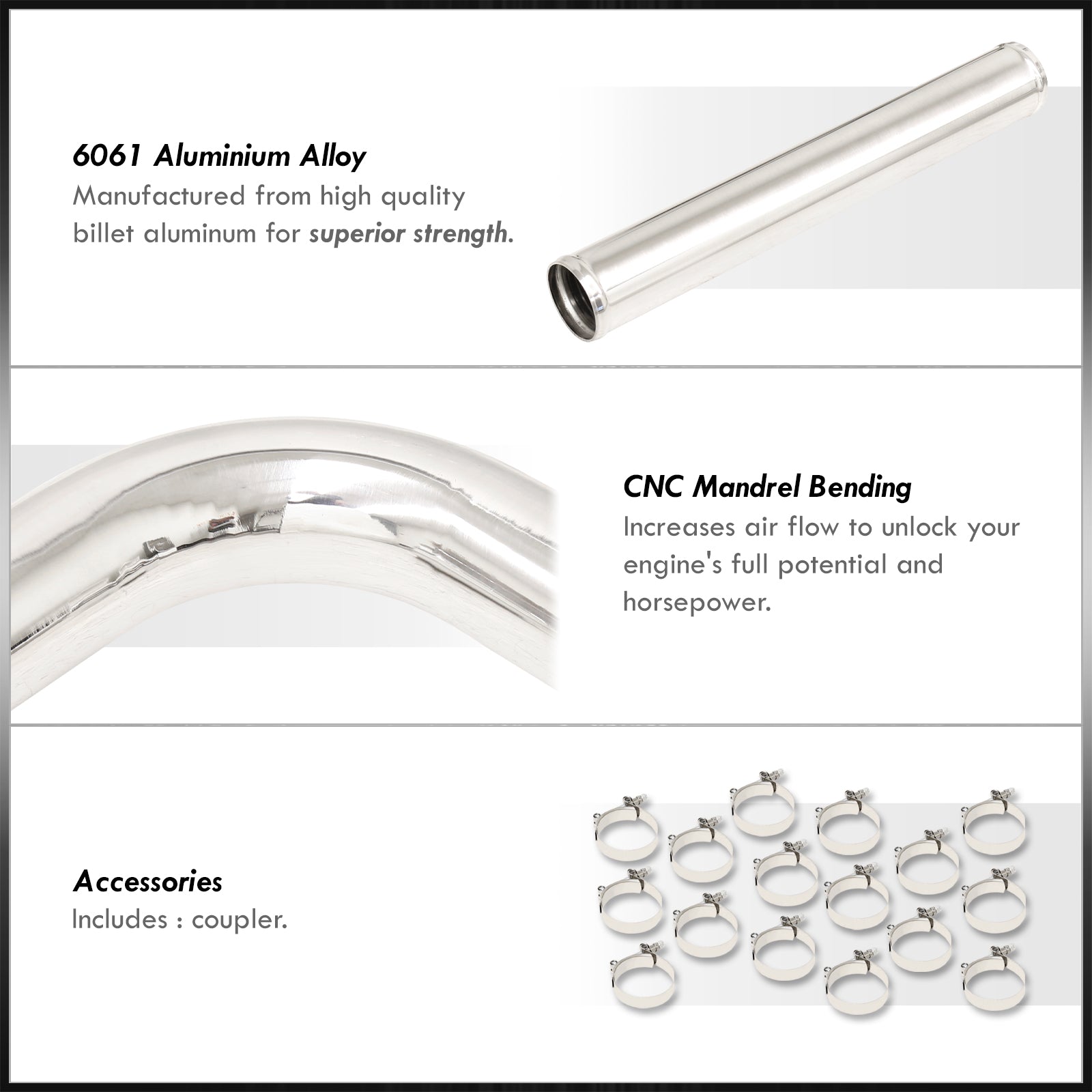 2.5" Universal Aluminum Piping Kit + T-Bolt Clamps + Silicone Couplers: