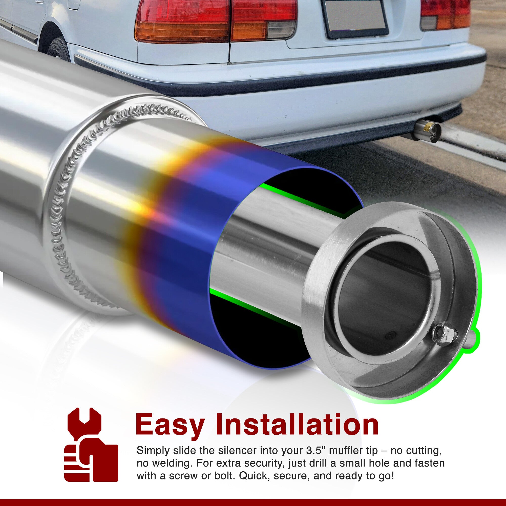 - * May require drilling a small hole for securely mounting the silencer into the muffler tip. *
