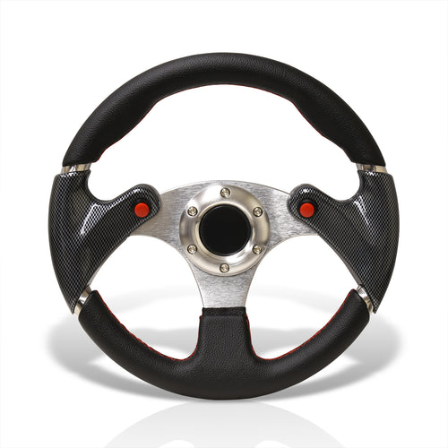 Universal 320mm Dual Button Style Aluminum Steering Wheel Silver Center with Carbon Fiber Handles