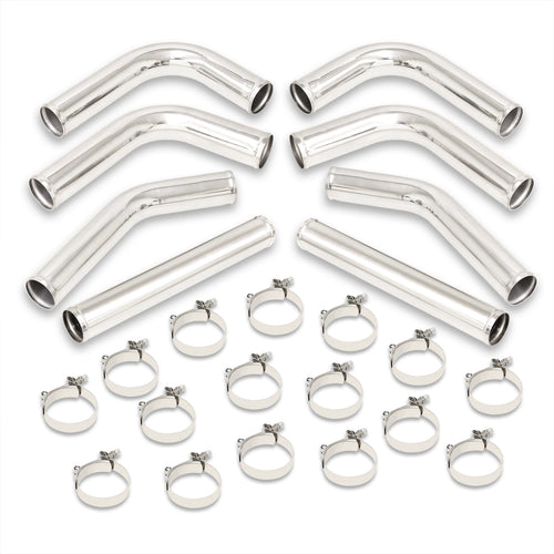 Universal 2.5" 8 Pieces Aluminum Piping Kit Polished (x2 Straight / x2 90 Degree / x2 120 Degree / x2 135 Degree)