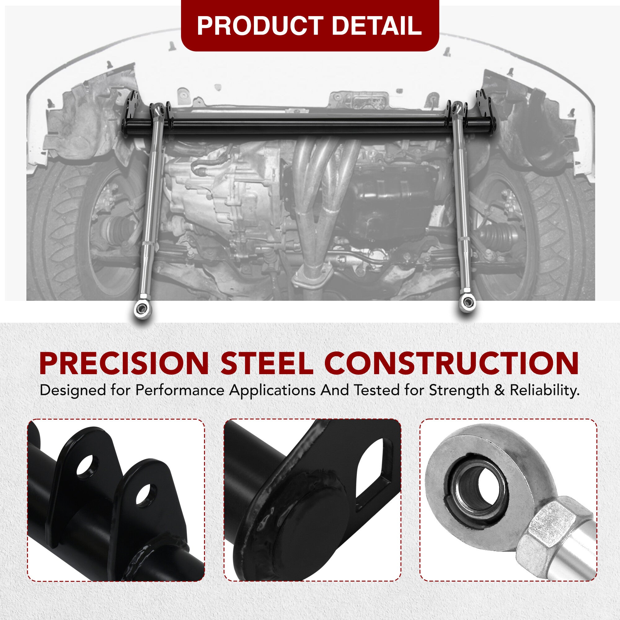 - Prevents body chassis flexing under heavy stress from hard cornering in order to improve rigidity and driving stability.
