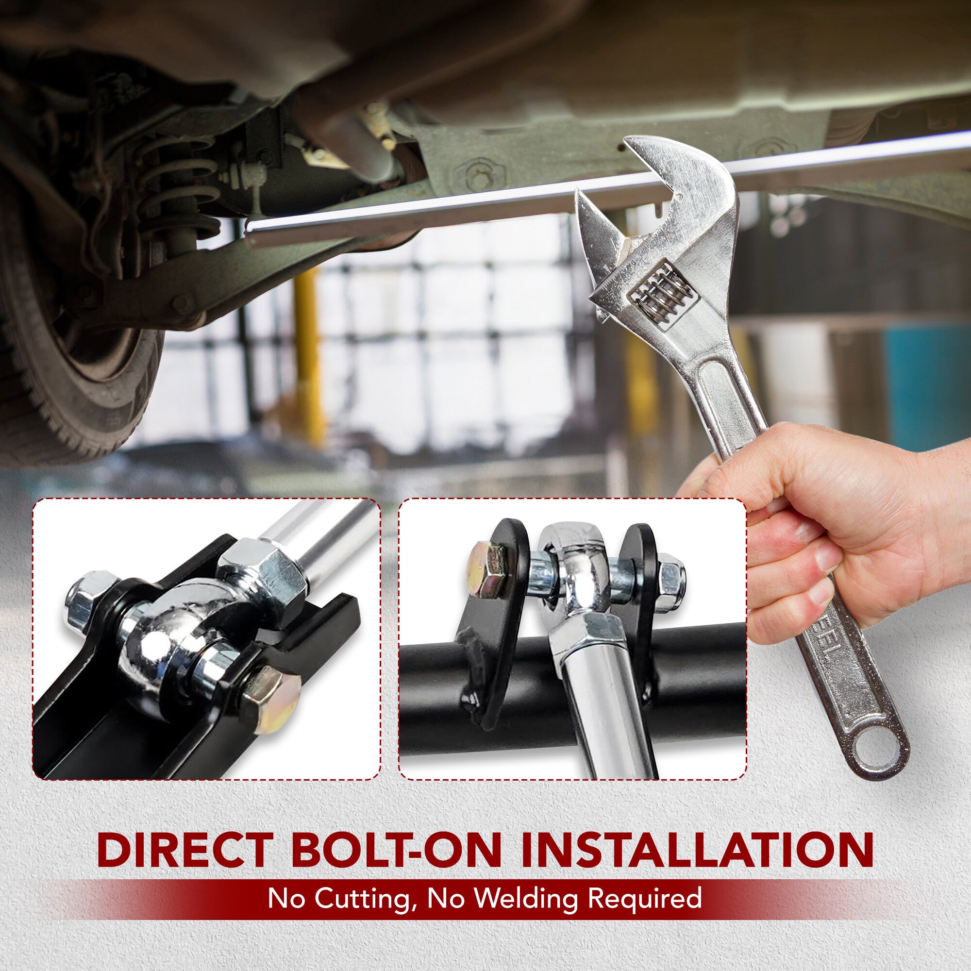 - Significantly increases stiffness and reduces body roll during aggressive cornering.