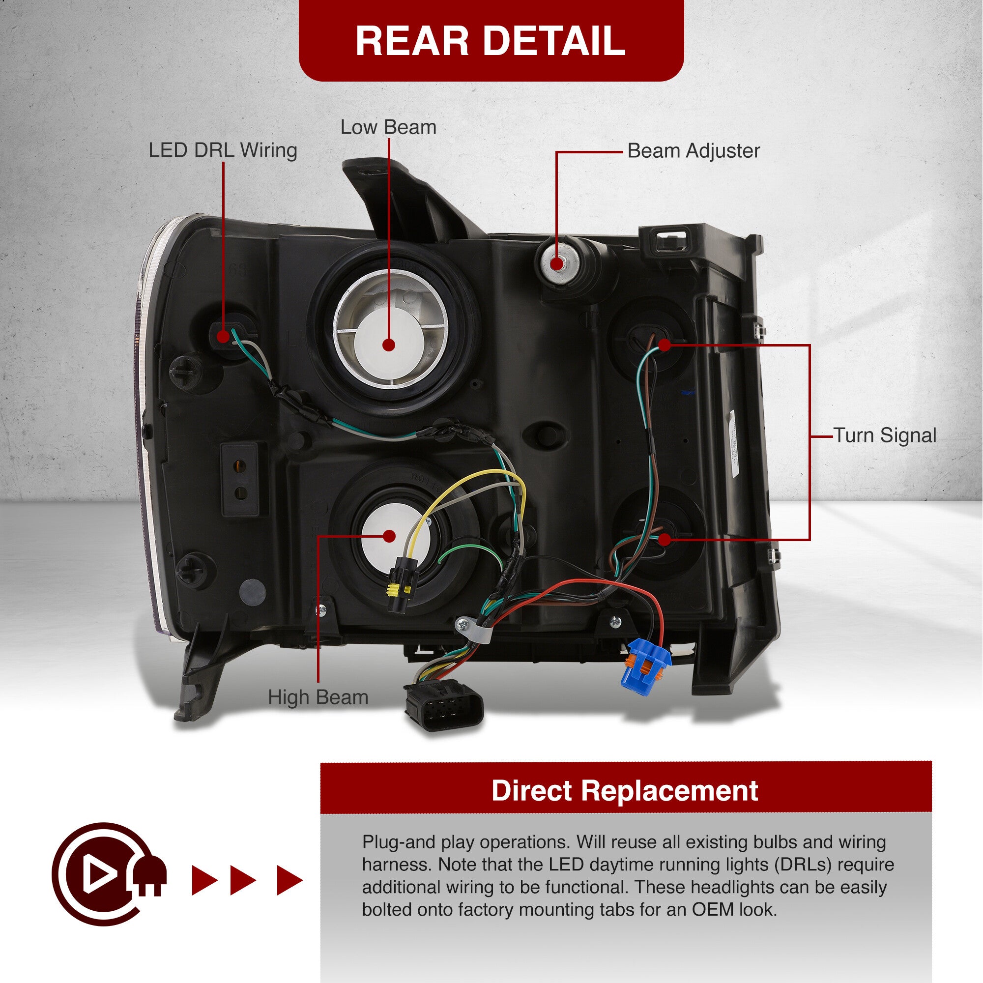 - Simple plug and play operations; no modifications required. Reuses factory mounting tabs for a 100% OEM look.